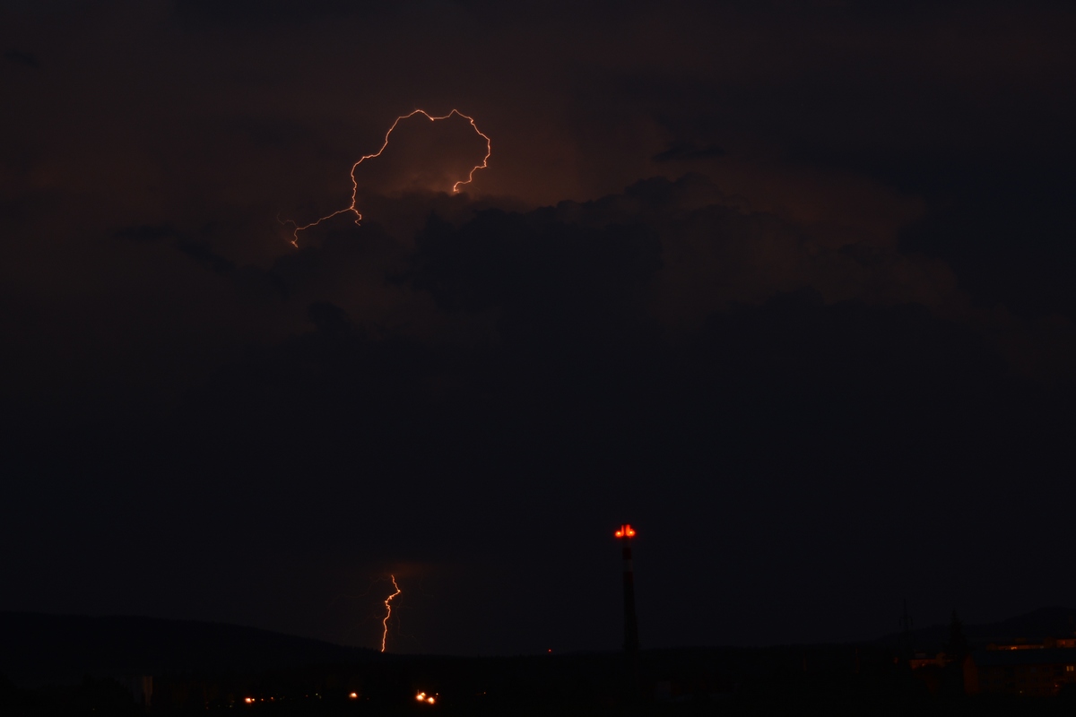 Protože jsem vůl, tak mě konečně rozbolel zub tak, že jsem nemohl spát. Chvíli po 23:00 SELČ jsem se vydal hledat Ibalgin, a přitom mě upoutalo blikání ze severu. Opět pohled na radar, a po chvíli, co jsem se musel vzpamatovat, jsem opět letěl ven. Co bych měl napsat... Jestli mi za letošní rok chyběl ohňostroj, tak jsem se ho o půlnoci mezi 2. - 3. 8. 2018 dočkal. Cca 5x do minuty obří záblesk v cébáku sunoucím se pomalu ze severu sem, pak se přidaly i CG, pak začala blikat bouřka někde na východě a když se neblýskalo dole, tak o sobě dávala vědět poblikáváním kovadlina, celou tu dobu ale bohužel schovaná v balastu. Čím víc se bouřka blížila (a slábla), tím víc začaly převažovat CG a definitivně se v 1:00 SELČ rozloučila několika CC přes půl oblohy.