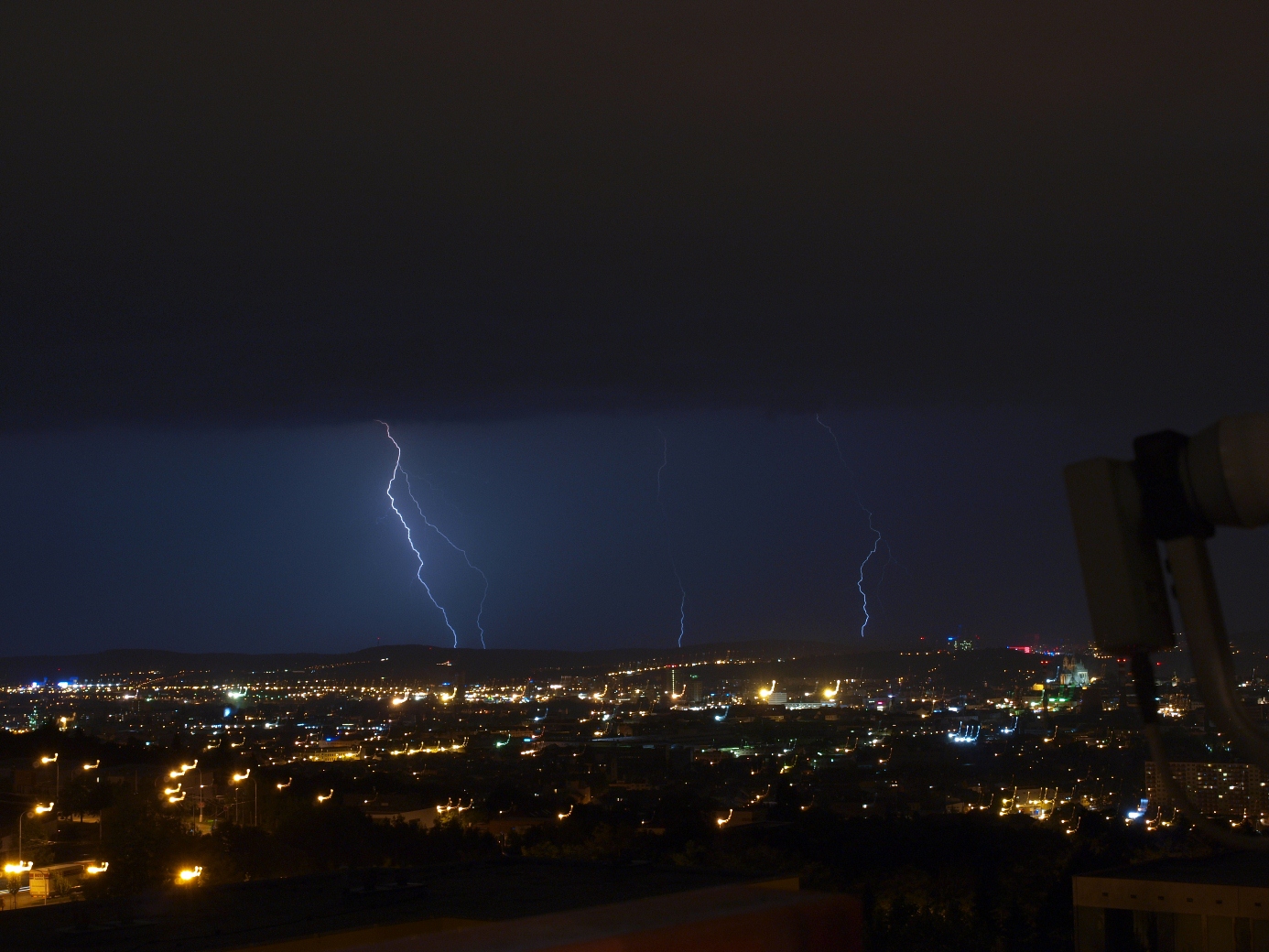 , ale přesto přidám aspoň jedno foto včerejších blesků a narychlo splácané timelapse po 5-ti vteřinových expozicích na ISO 800: