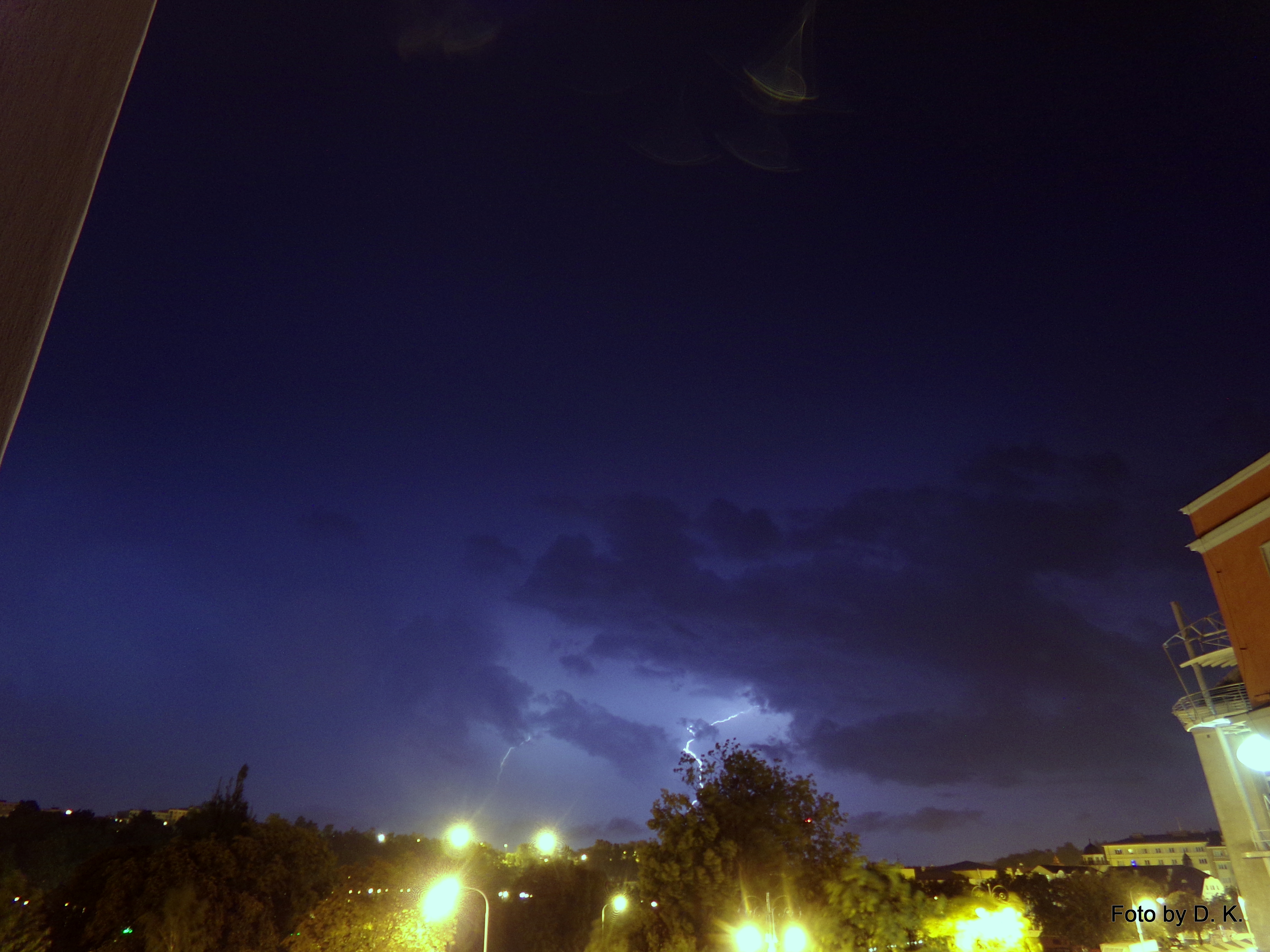 Tam mě překvapilo, že zatím co to na Z sláblo, přes nás nic, ale na SV nová aktivita. Po půlnoci začalo pršet. Prudký drobný déšť, silný vítr. Do 40 min po dešti. Vydržel jsem pozorovat do půl druhý. Poté bouře slábla a já taky, už jsem usínal ve stoje.