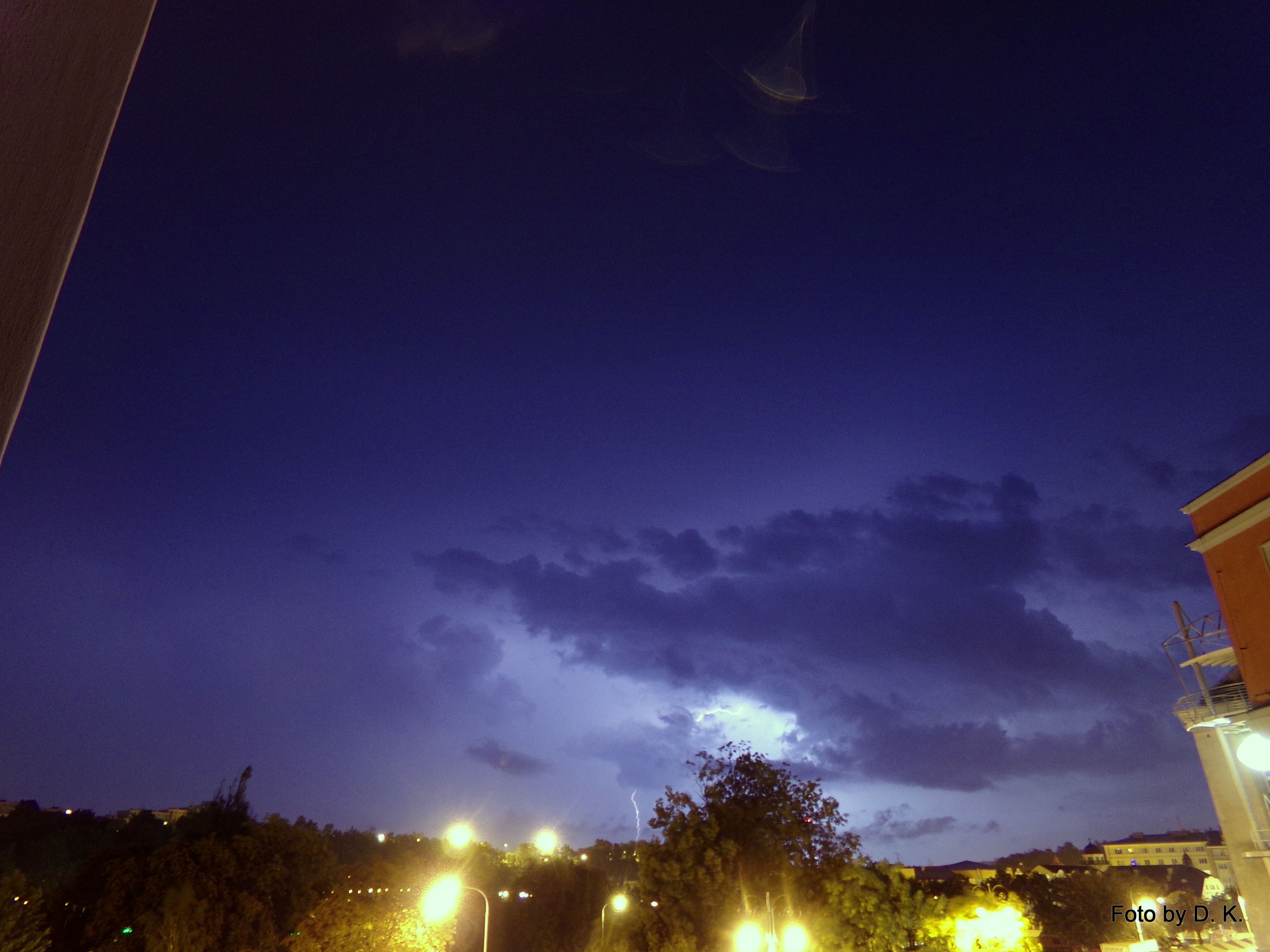 Pozoroval jsem ji již cestou z Prahy. Výrazné srážkové pruhy a pár záblesků. I když se před náma téměř rozpadla, trefila nás středem a spadlo asi 3 mm v pěkném lijáku. Do toho tak 20 hromů. Na focení to bohužel nebylo, ale slyšet po takové době zase hrom, to nebylo špatné.