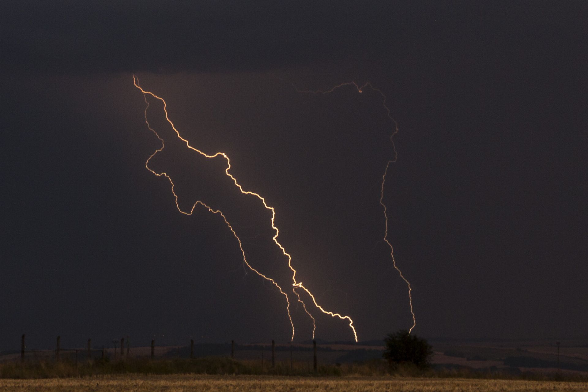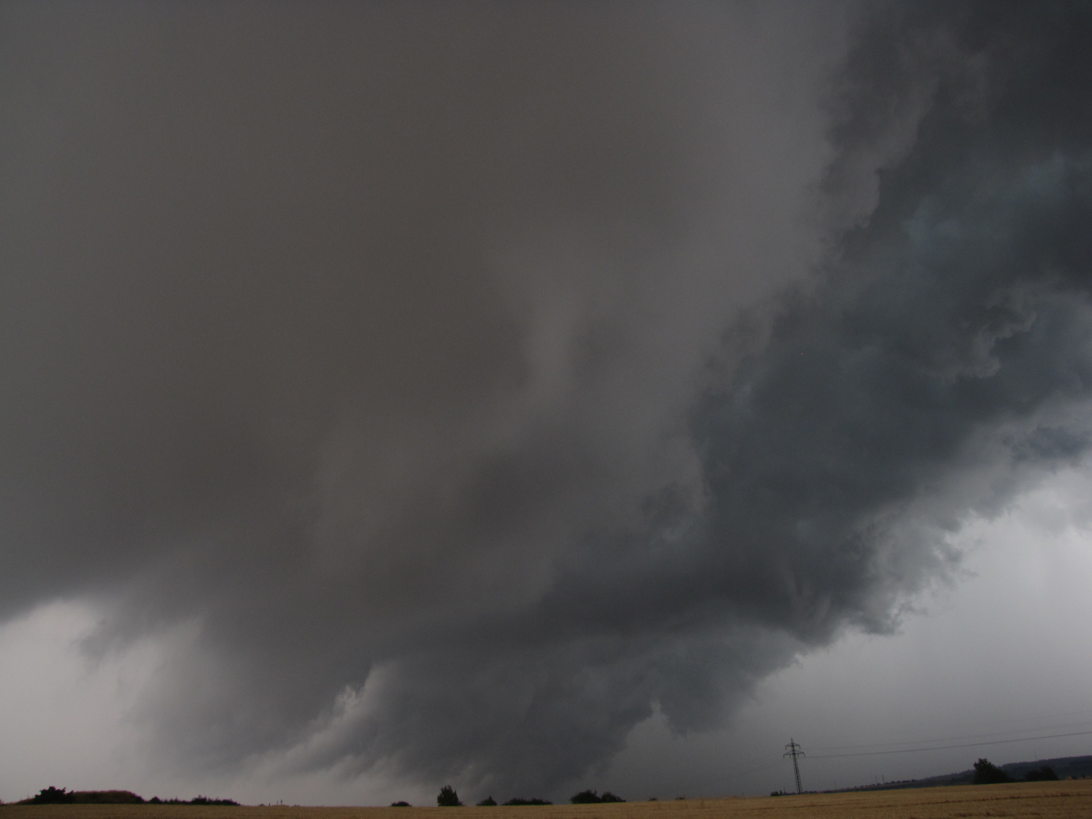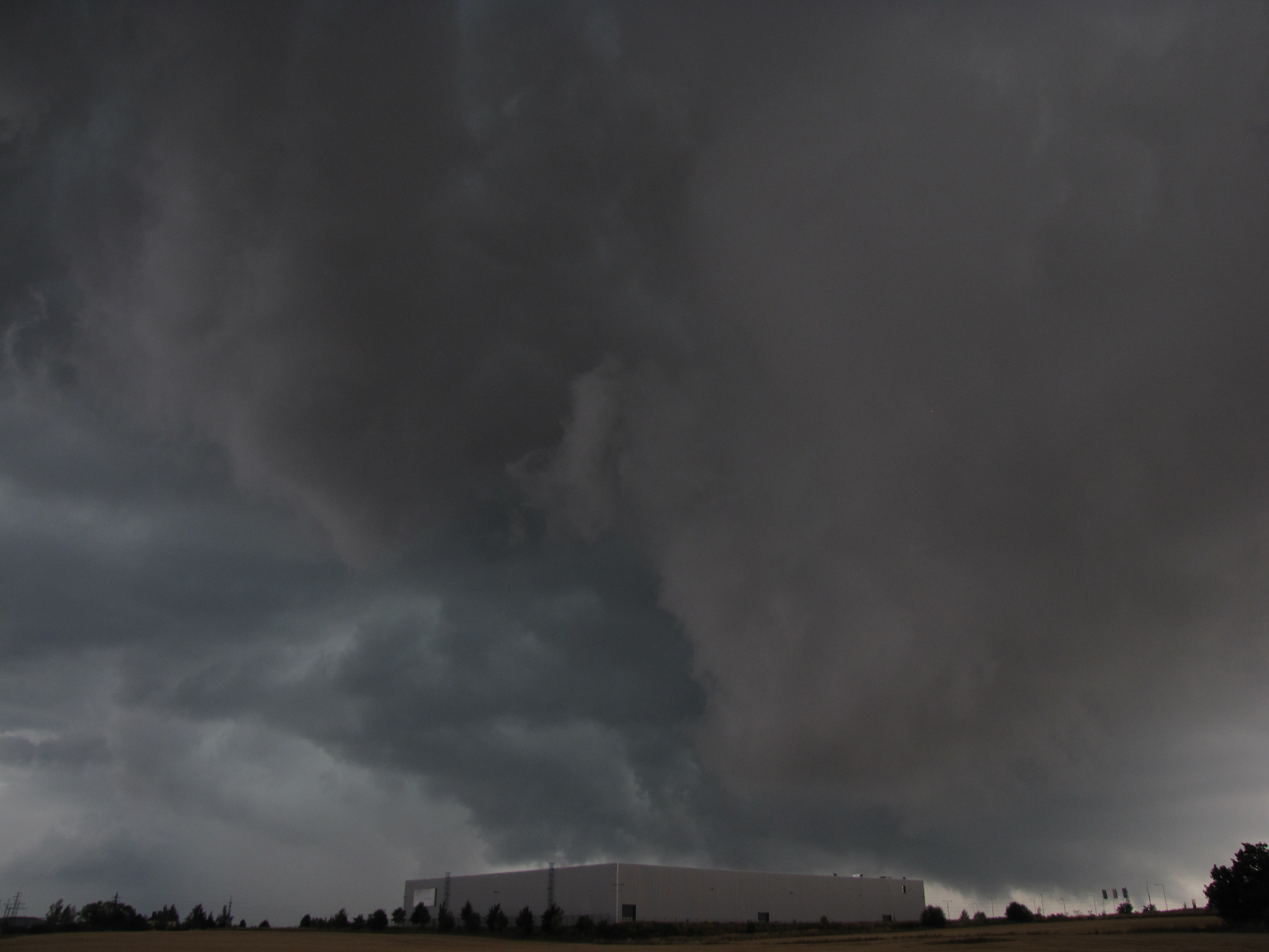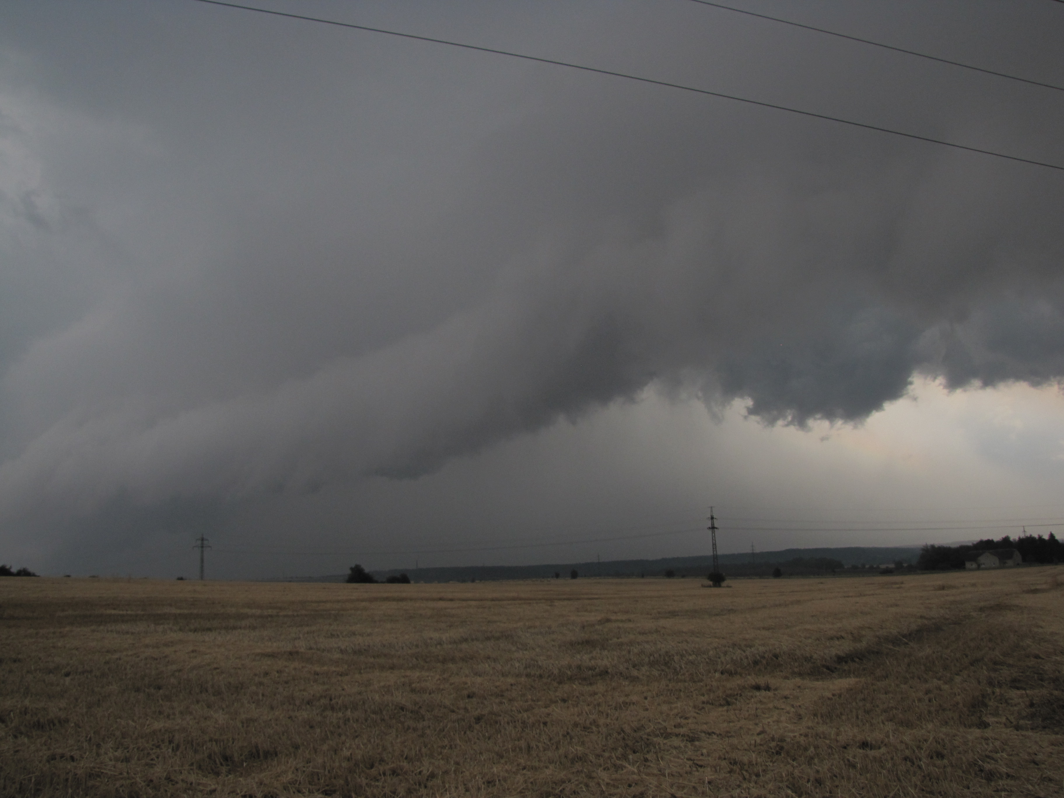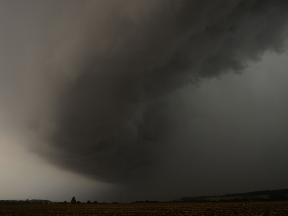 Těšil jsem se na tuto bouřku co šla od Prahy. Struktura byla zprvu v dálce skutečně úplně fádní, pak se ale vynořilo doslova kolosální čelo bouřky. Po 38°vedrech tedy konečně odpovídající závěr - plný zásah bouřkou stupně 1. Focení dlouho komplikovaly předsunuté srážky, ale těsně před hlavní bouřkou to na pár minut ustalo.