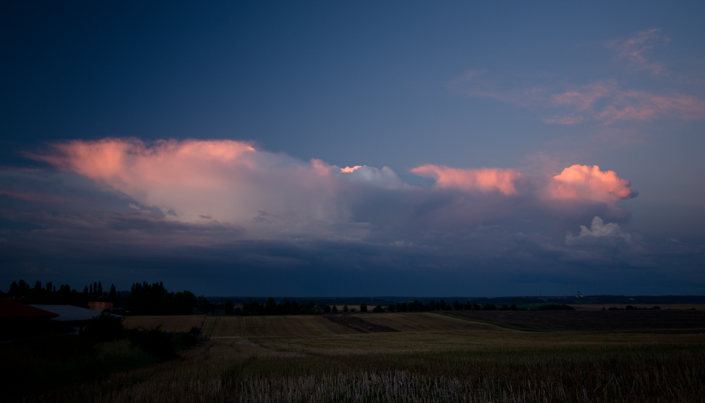 V noci jsem naspal jen 2 hodiny, ráno jestě k tomu zmoknul, ale stálo to za to - nejprve od 2. hodiny ranní blýskavice na jihu (bez foto-výsledku), ale pak asi od půl páté krásné cumulonimby na jihu. Nakonec pak ranní bouřka jak se patří - včetně typické struktury základny ranních bouřek. Zbytek dne patřil Moravě, ale myslím že tento rok zaslouženě. Více bude v článku.
