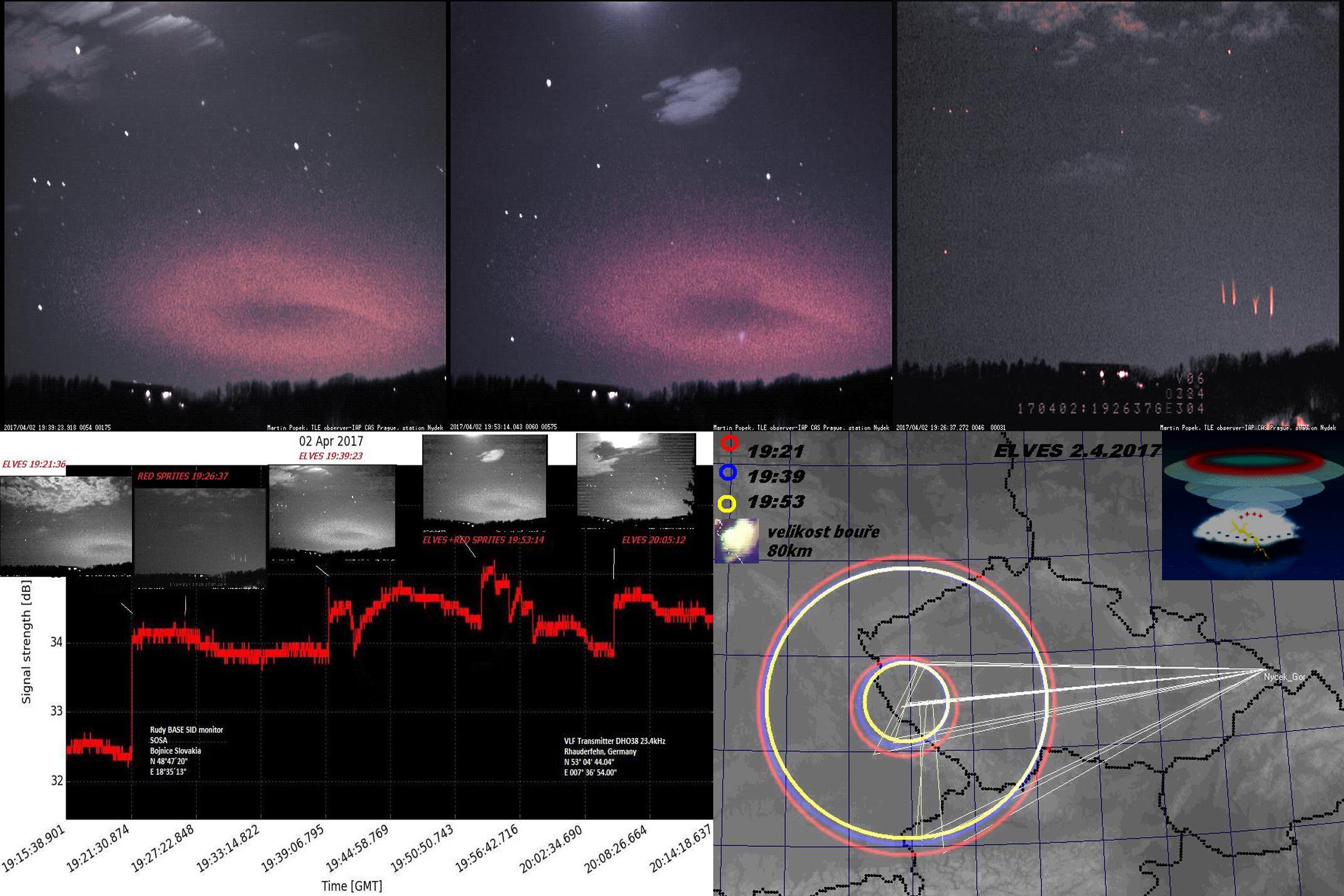 Pozorování krátkodobých slabých záblesků nad silnými bouřemi: Red Sprites, Elves, Blue jets.