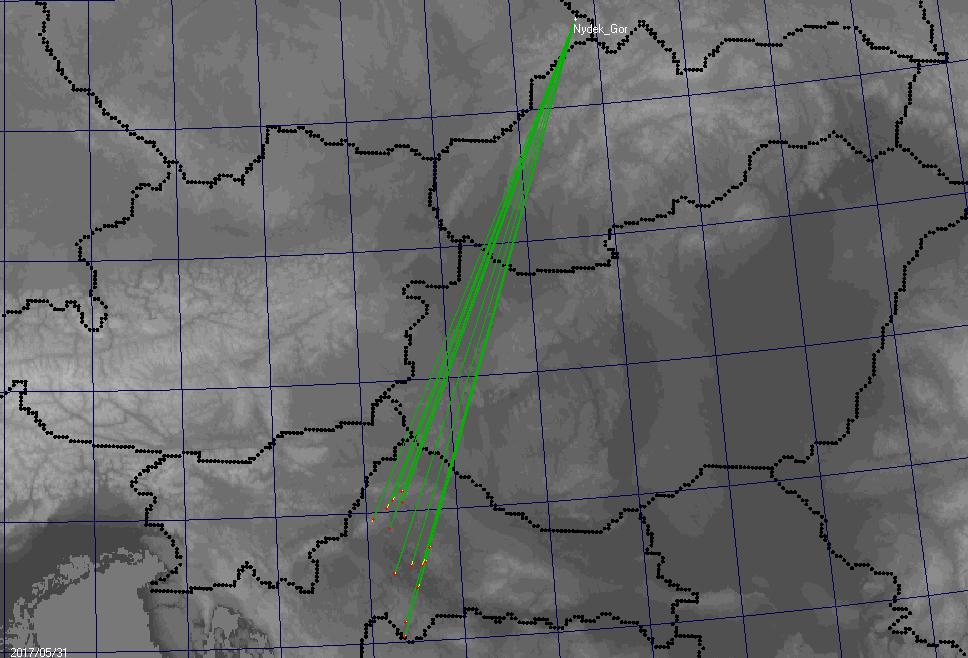 Z MCS nad severním Chorvatskem se tuto noc povedlo zachytit 14 Red sprites a jedno velmi slabé halo ve vzdálenosti 437-502km.