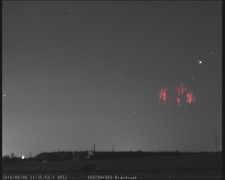 První pokus s novým vybavením na "sprajty" a hned první úlovky se povedly 8.6.2018, kdy se v nočních hodinách vyskytovala nad pomezím Rakouska, Maďarska a Slovenska rozsáhlá MCS, která ihned od instalace kamerky dávala najevo, že je co se týče Red Sprites velmi aktivní.