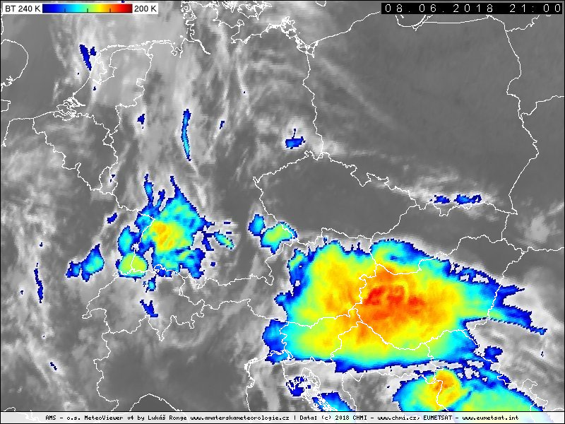 Red Sprites na pomezí Rak., Maď. a Slo. 8.6.2018
